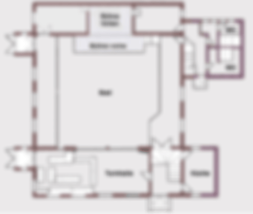 Saal: 221 m², Turnhalle: 87 m², Küche: 21 m², Bühne: 33 m² (vorne 8 x 2 m, hinten 5 x 3,5 m)